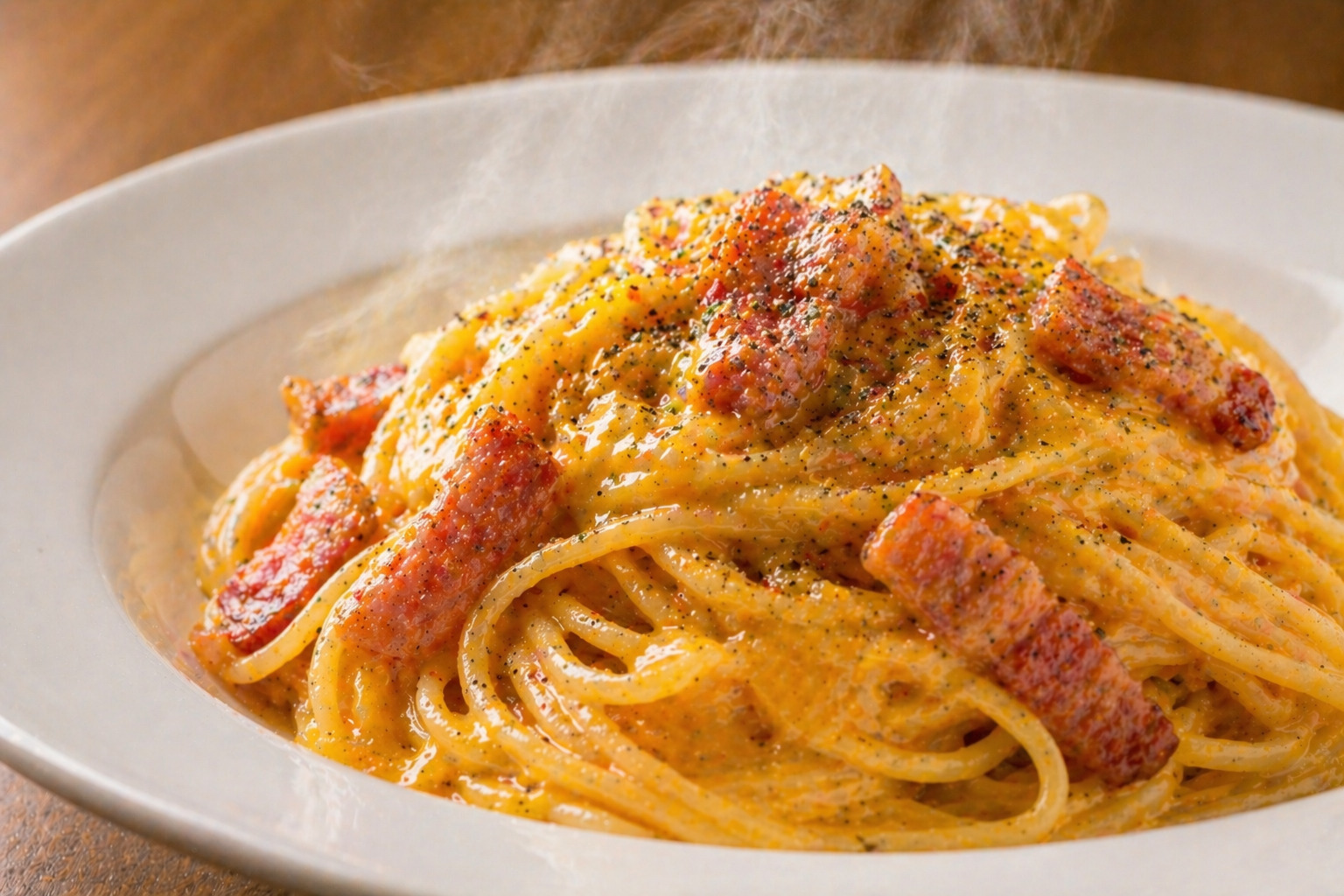 - 黒こしょうはたっぷりが本格カルボナーラの証